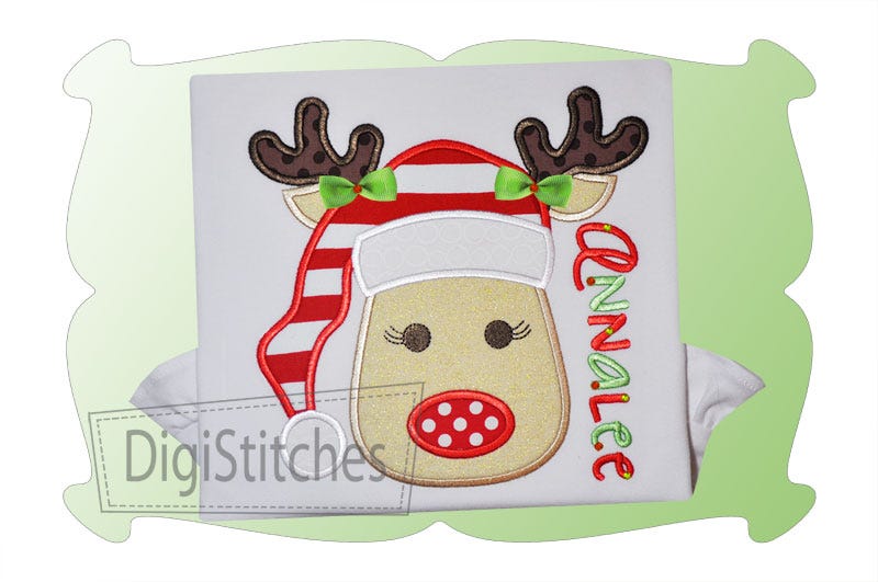 Reindeer With Santa Hat For Girls Applique