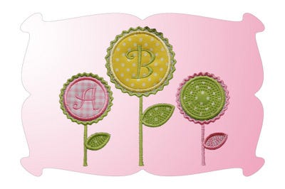 As a special bonus, you also get the Rick Rack monogram flowers in two sizes: 4x4 (2.20 x 3.75 inches) and 5x7 (3.00 by 5.77 inches).