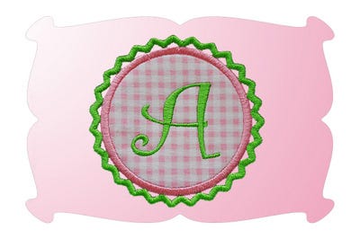 Again, the Curlz monogram font (capital letters A thru Z) is already imbedded onto the design for you.