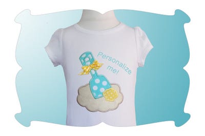 Our sand shovel applique with seashell is sure to be a summer time favorite.