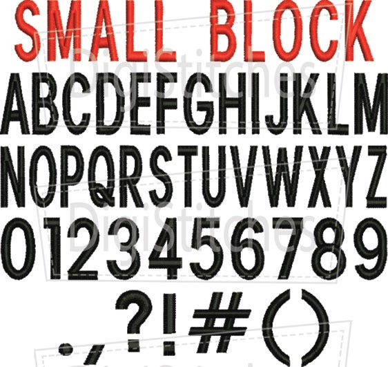 Small Block embroidery font features very small letters that are specially digitized to stitch cleanly and legibly.