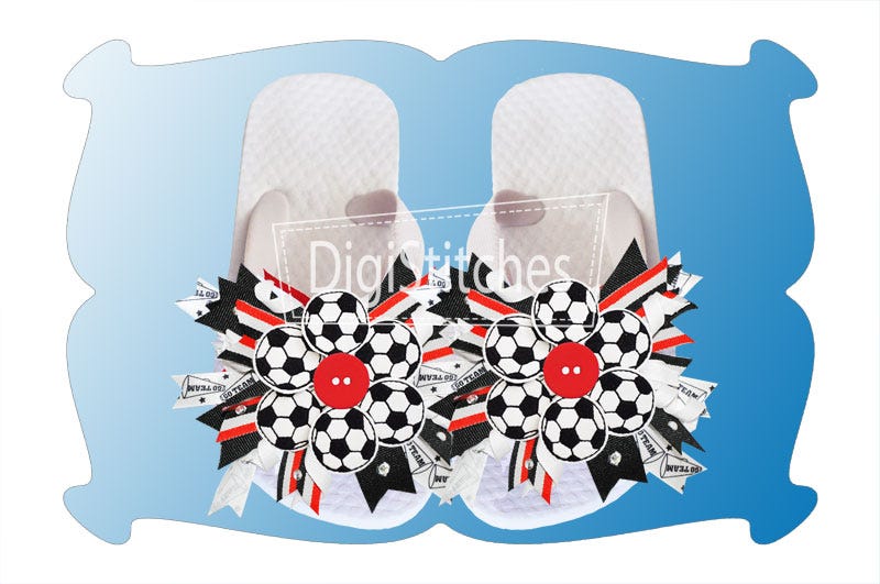 The soccer flowers come in 3 sizes: 2, 3 and 4 inches. The designs come in both Single and Multiple Files. The multiple files make 3 flower petals (one flower) at a time. The single files are made so you can copy and paste as many single petals as will fit in your hoop to make as many flowers as you need.