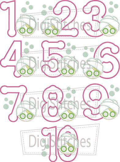 Spa Birthday Numbers Applique includes numbers 0-10.
