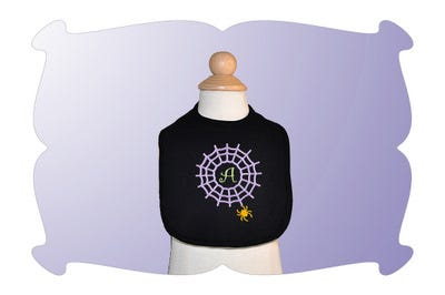 Spider Web with spider in 4 sizes: 3x3 (perfect for doll clothes and small Onesies), 4x4, 5x7 and 6x10.