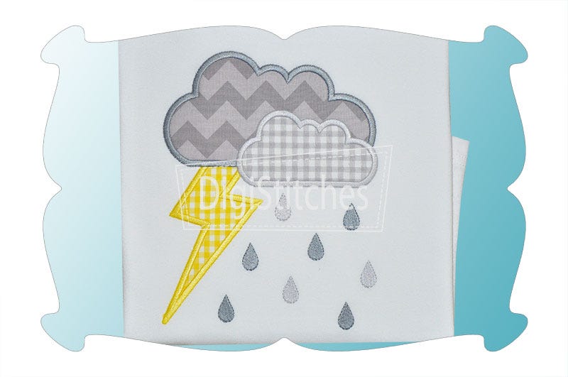 The Storm Clouds With Lightening Applique comes in 4 sizes. All sizes included with your purchase!