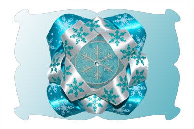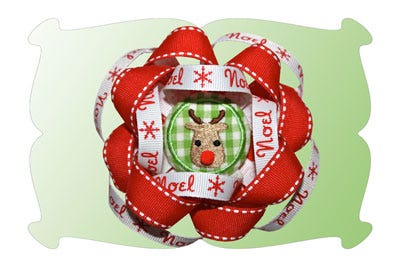 The Surround-A-Bow designs are made to fit the 4x4 hoop size and are made completely in the hoop (no off machine sewing). The bows come in 3 sizes: