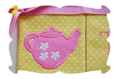 The Tea Party Banner design is made in the 5x7 hoop.