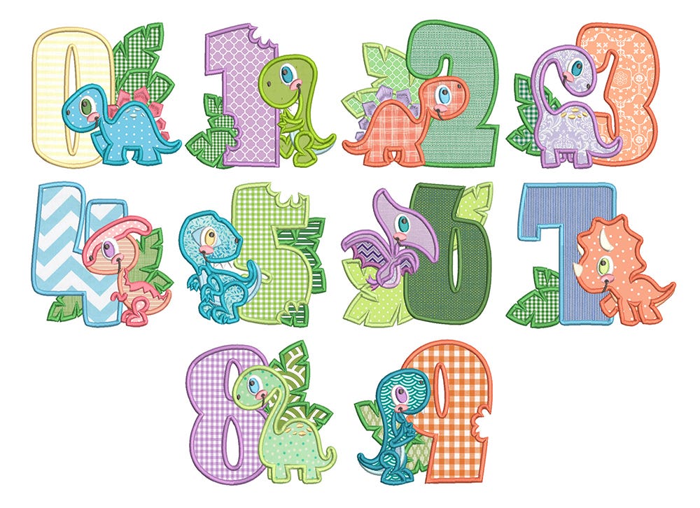 Numbers 0-9 in applique with super cute dinosaurs!
