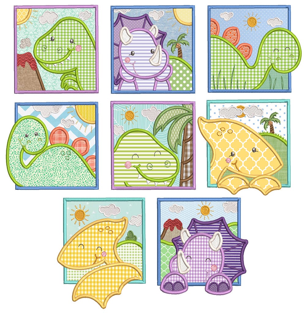 8 awesome dinosaur squares in applique!