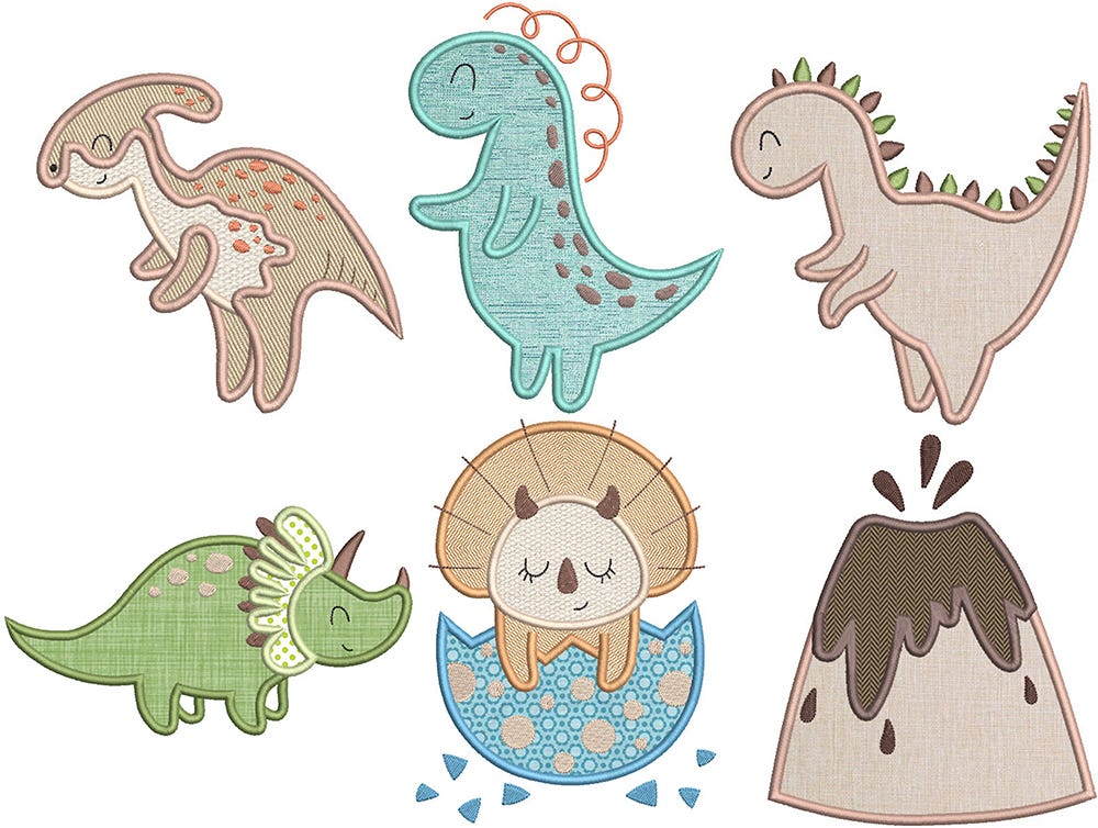 Six more adorable dinosaur themed applique designs, perfect for boys and girls alike!