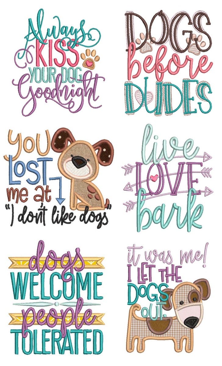 *Please note that the following designs contain applique components:Ā You lost me at "I don't like dogs" / Dogs welcome people tolerated / It was me! I let the dogs out /Ā