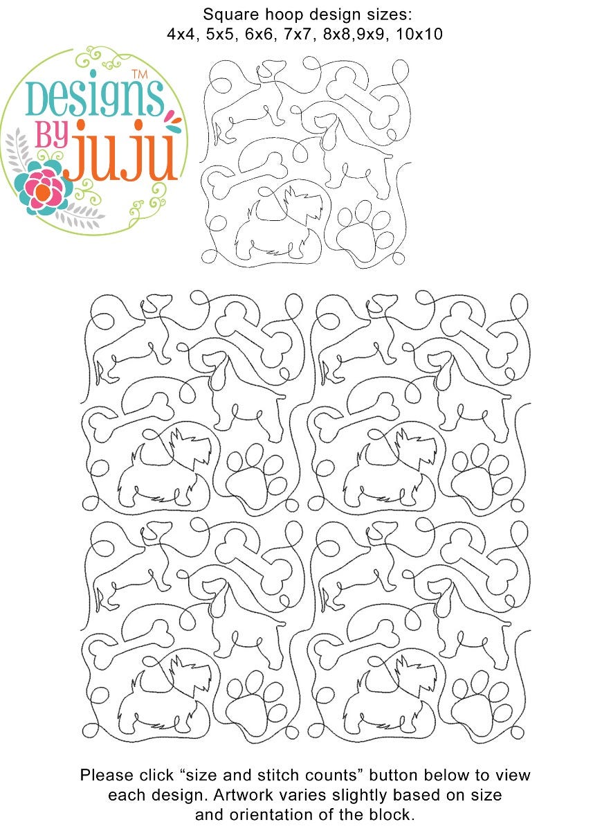 Please note: Both the scale of each pattern and arrangement of the motifs may vary based on the hoop size. Please click the "Size and Stitch Count" button to view the artwork for each size.