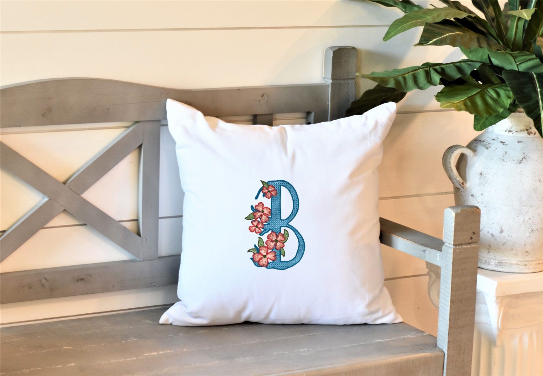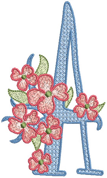 Our Dogwood Alphabet features motif fill lettering and sketch fill flowers with satin stitch outlines.