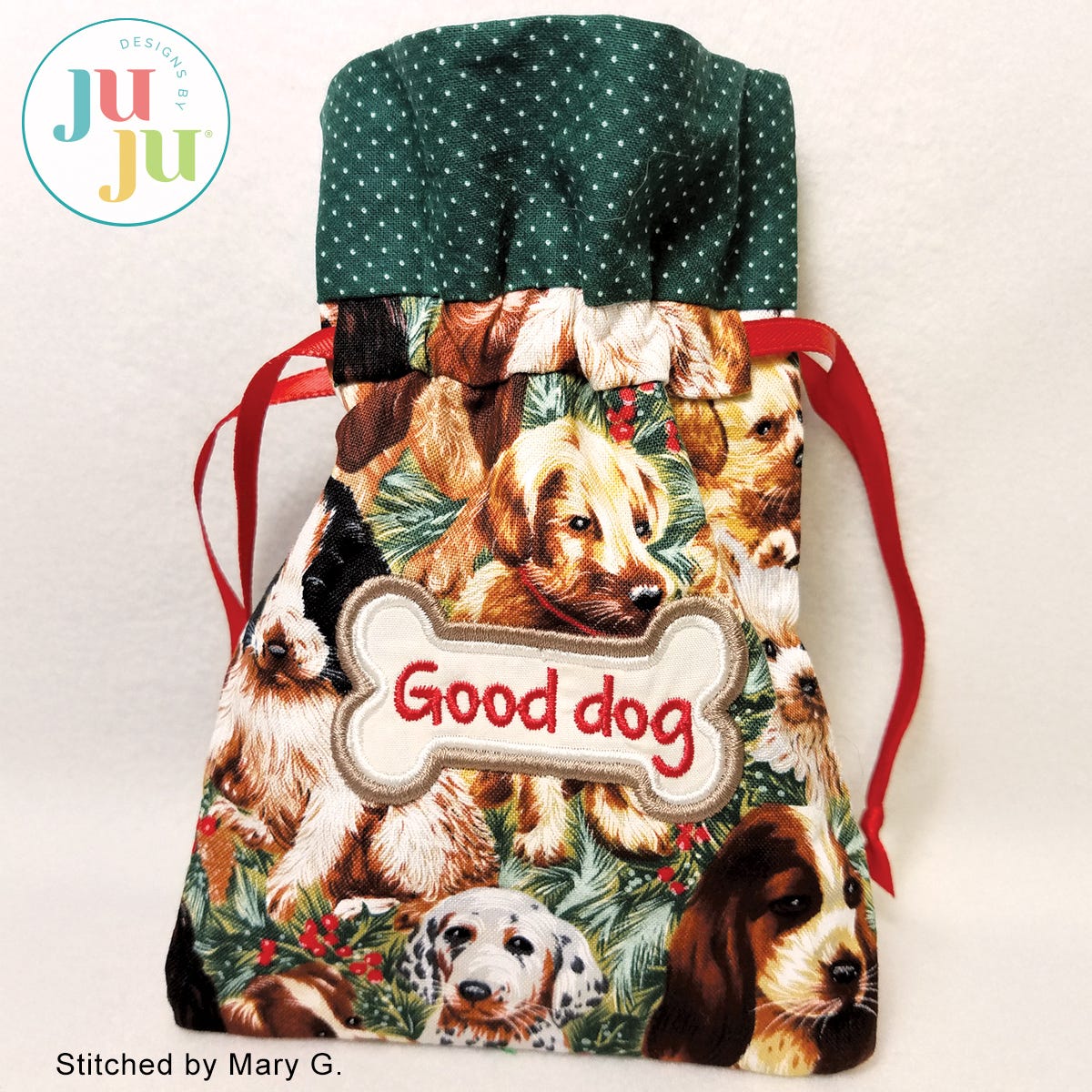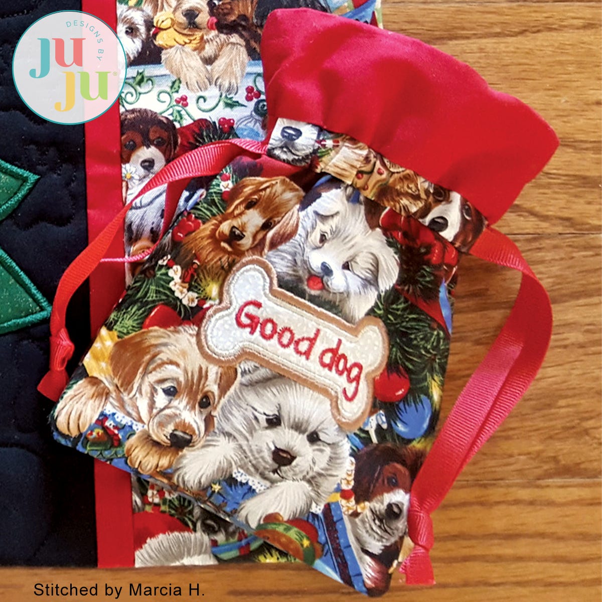 This drawstring bag is a fun and practical gift for a pet owner this Christmas. Perfect size for treats for smaller dogs. Hang the little bag from the tree this year with your pet's favorite treat. But don't just think pet and Christmas only. By skipping the label part of the bag, this can also become a gift bag for any occasion.
