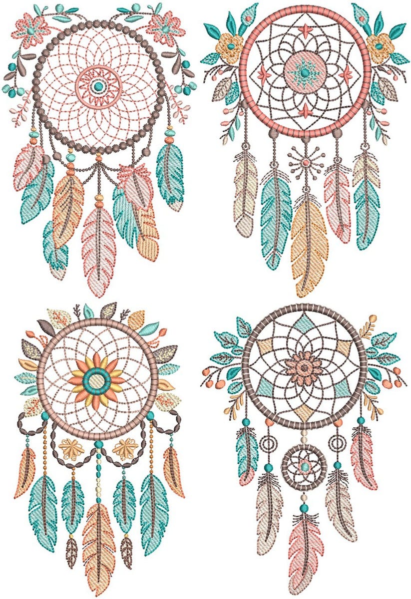 4 brand new and beautiful dreamcatcher designs! These designs are embroidery-only featuring a mix of satin, sketch, bean stitch details.