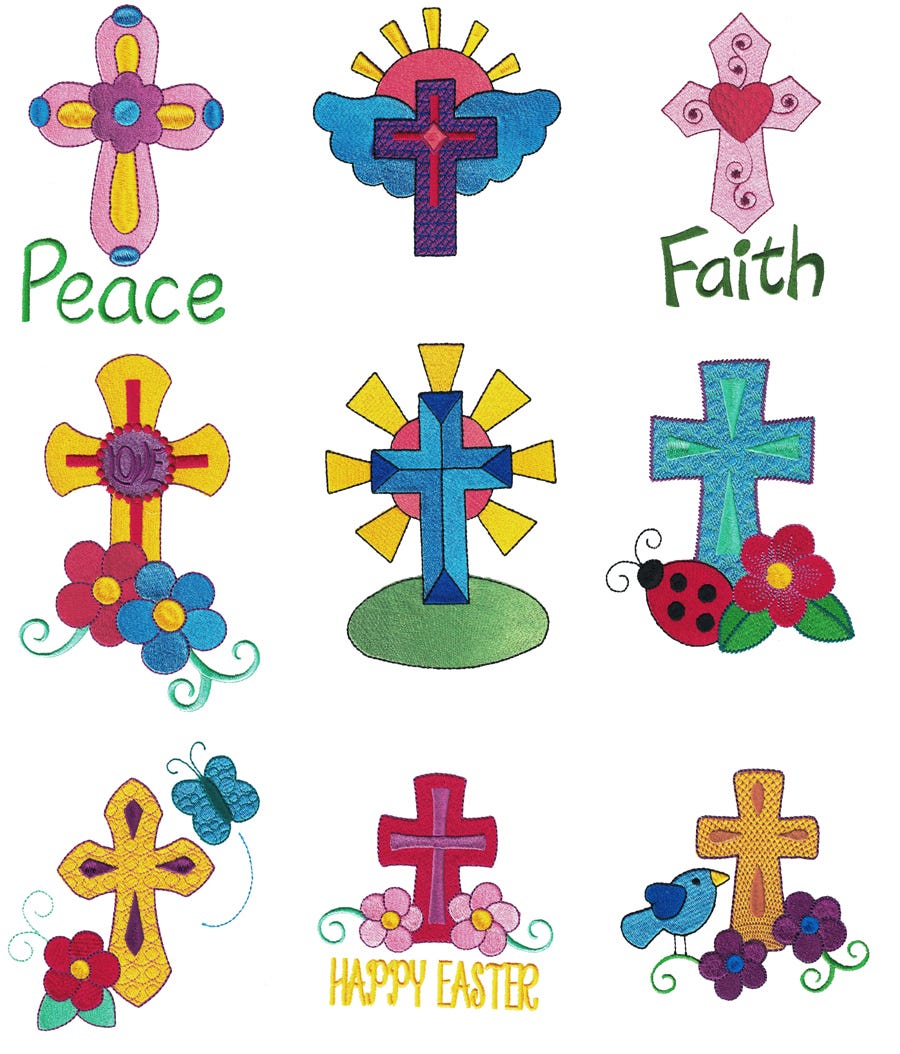 Nine simple Easter Crosses in filled stitch for your spring projects