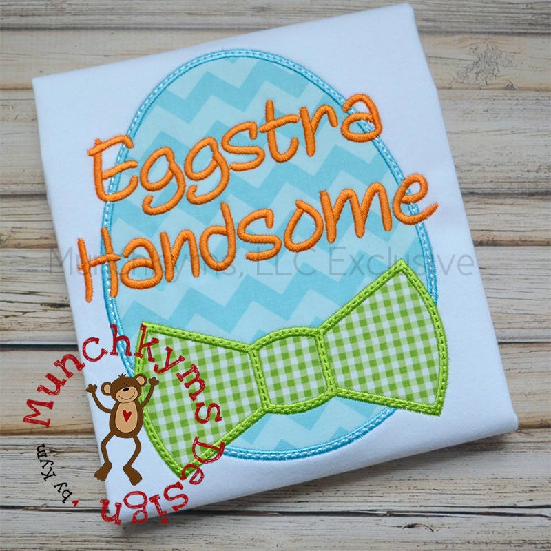 Shown customized text "Eggstra Handsome" for idea purposes only, font not included.