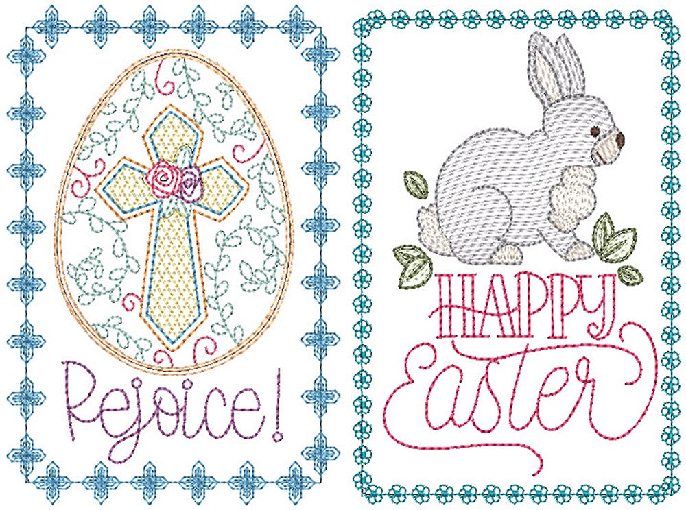 5x7 will fit on a 5x7 card with approximately 1/4-1/2 inch margin all the way around. I like to stitch my design onto Watercolor Paper, and then trim it out and mount it onto a contrasting colored cardstock.