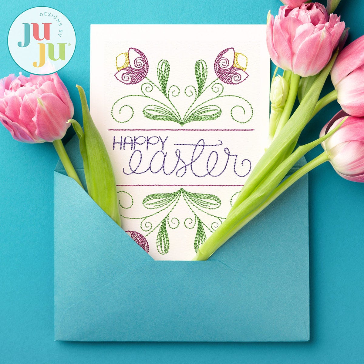Stitching embroidery onto cardstock is fun and easy! We include a PDF in your download with some tips and tricks on embroidery onto cardstock.