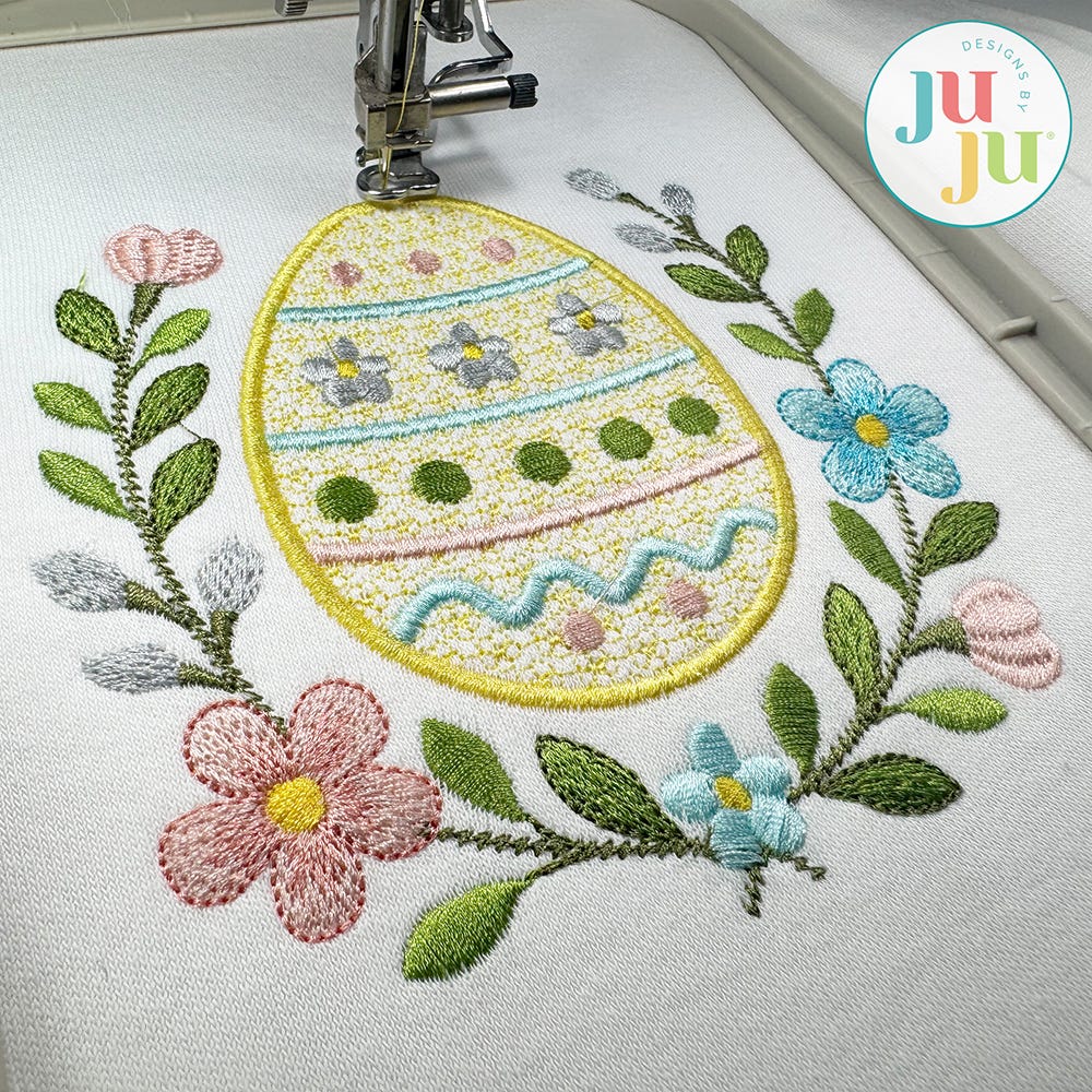 Stitch some lovely classic Easter projects with our Easter Laurel Egg design! This single, embroidery-only design features a beautiful floral laurel surrounding an decorative Easter egg, done in a gorgeous variety of embroidery stitch types to create a lovely textural look.