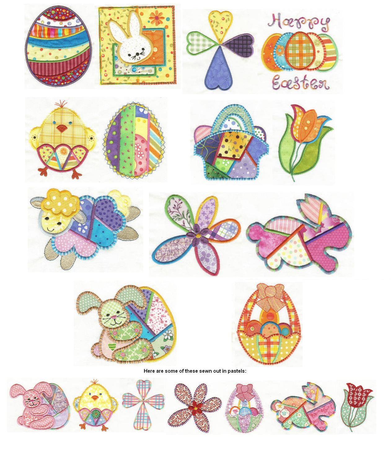 Here is a precious, simple patchwork set for Easter. Use up your little favorite scaps and come up with some beautiful results!