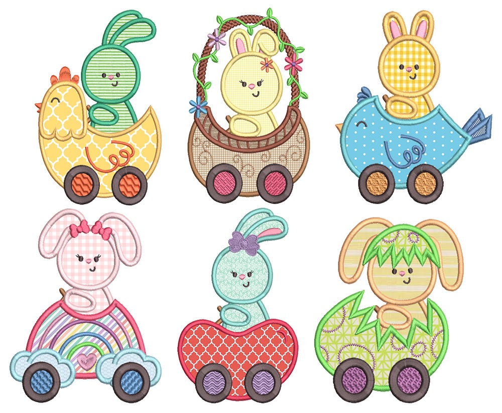 6 precious Easter themed cars in applique!
