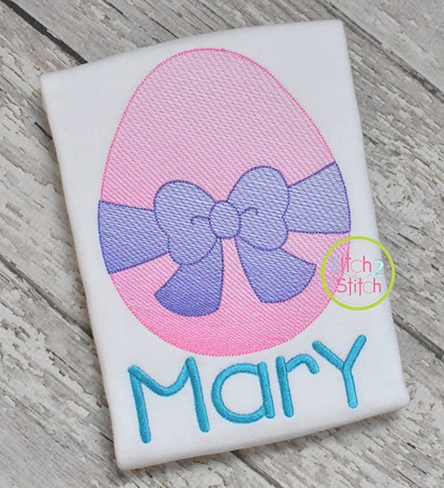 The light and airy "sketch" fill pattern allows for a quick stitch out. The space between each line of stitching varies such that it is more dense at the bottom of the object than top to create the shading effect. The objects are finished off with a triple bean stitch outline.