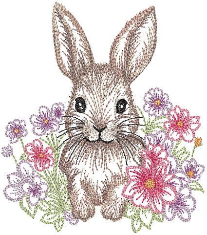 A sweet bunny has hopped through the flowers to wish you a Happy Easter! This design is perfect for vintage spring