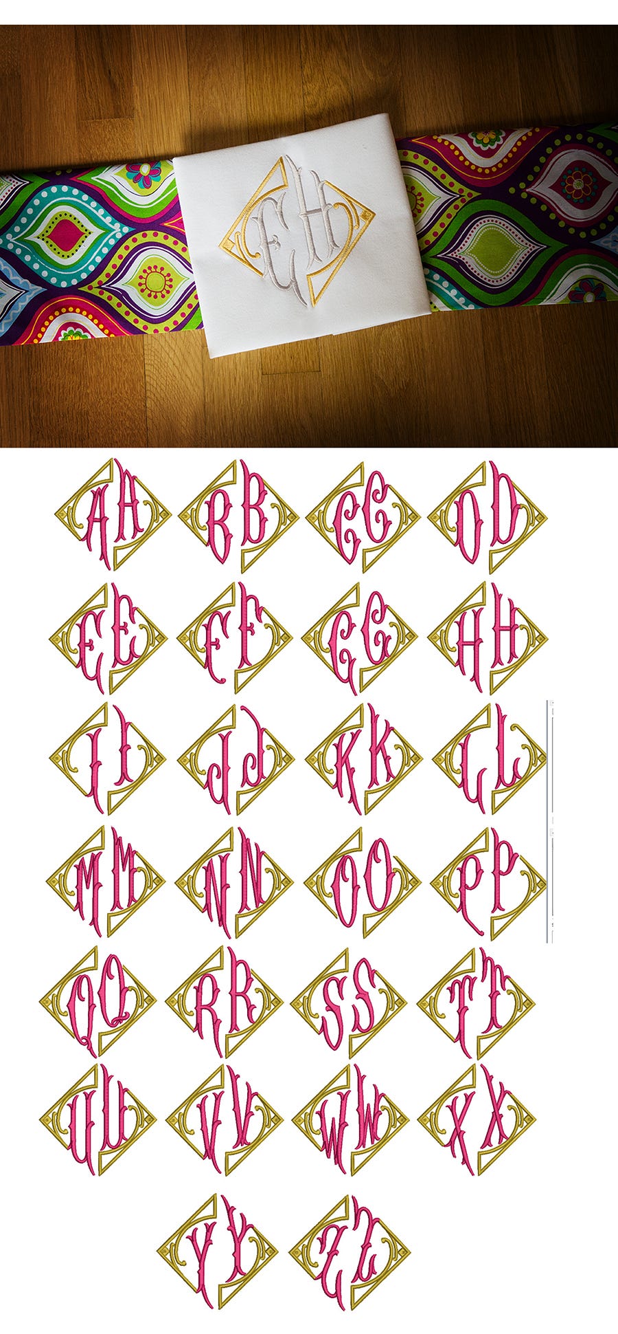 Based on monogram purchased and licensed for embroidery digitizing from Font Bros