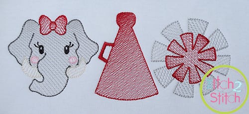The light and airy "sketch" fill pattern allows for a quick stitch out. The space between each line of stitching varies such that it is more dense at one side of the shape than the other to create the shading effect. We do NOT recommend resizing designs with sketch elements in software.