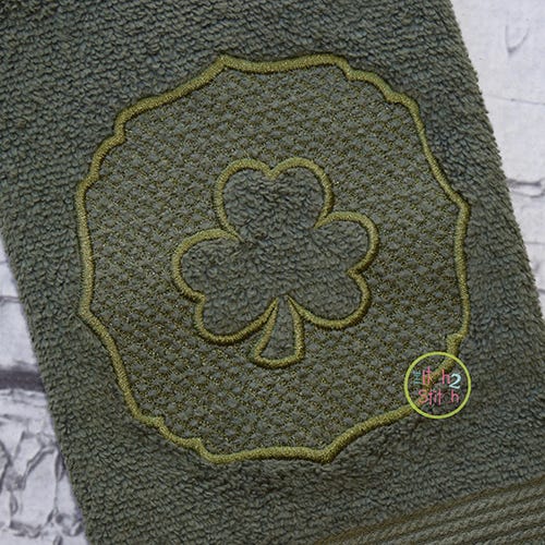 To recreate the look of our primary sample image we recommend using tearaway stabilizer on the back of the towel and a thin water soluble stabilizer (like Sulky Solvy) on the top of the towel. We used one thread that coordinated with the color of the towel for all three steps of the design for a tone-on-tone look