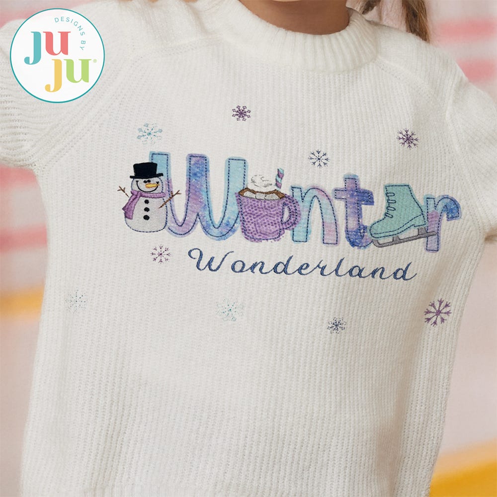 The Winter sample uses designs from the Winter Alphabet Embellishment Kit and our Emaline font, both sold separately.