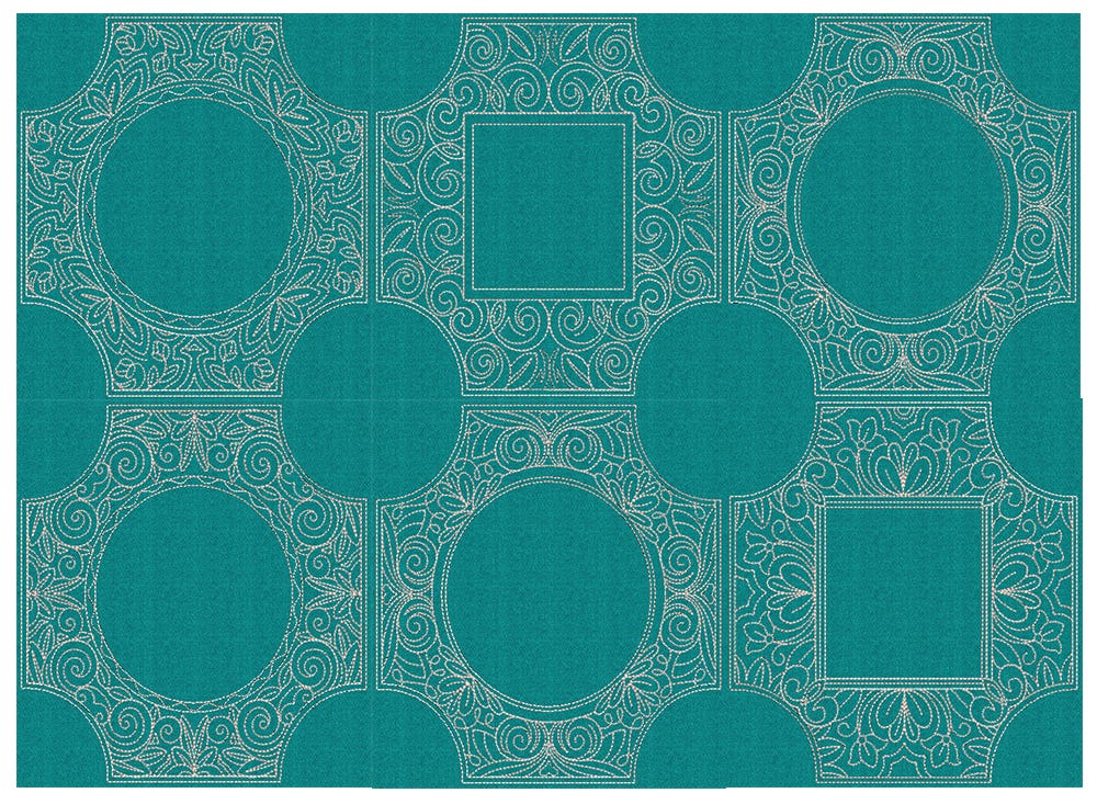6 beautiful quilt blocks with open centers and corners.