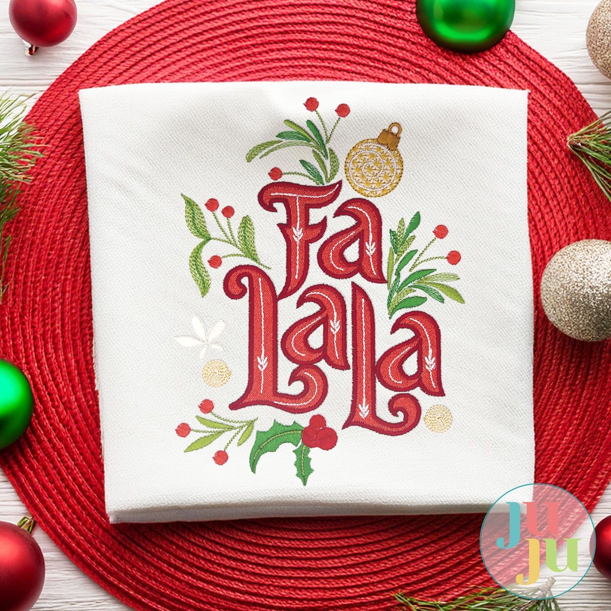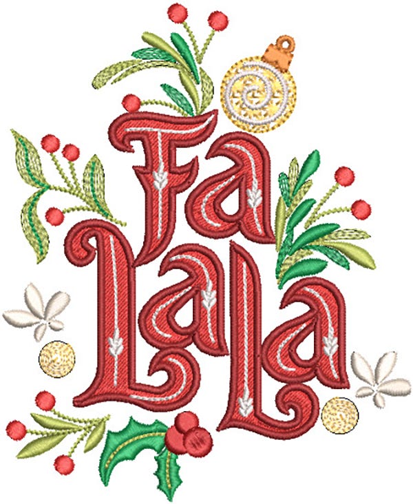 Fa La La La La...Sing your way into the Christmas season! This single embroidery-only text design features fill