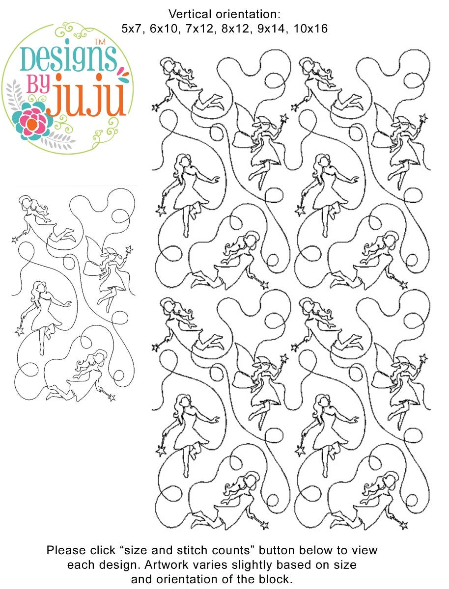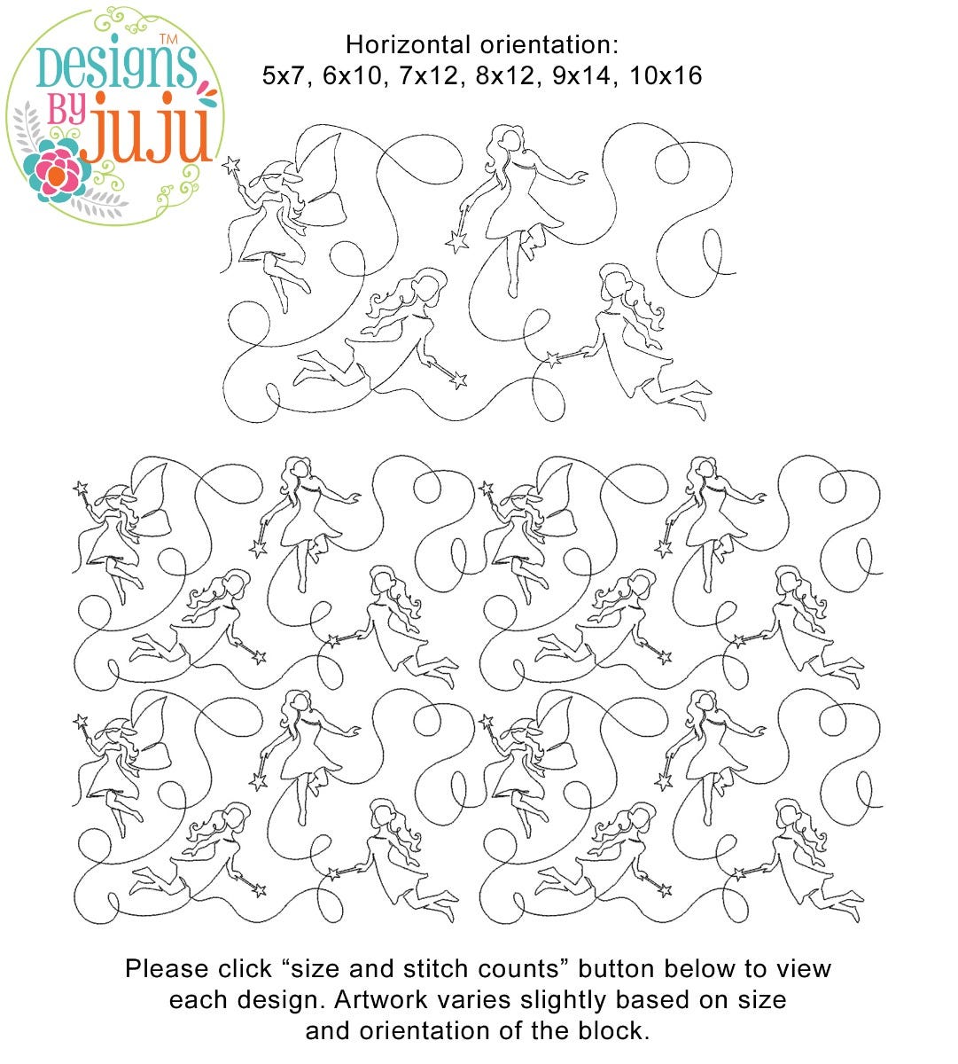 Please note: Both the scale of each pattern and arrangement of the motifs may vary based on the hoop size. Please click the "Size and Stitch Count" button to view the artwork for each size.