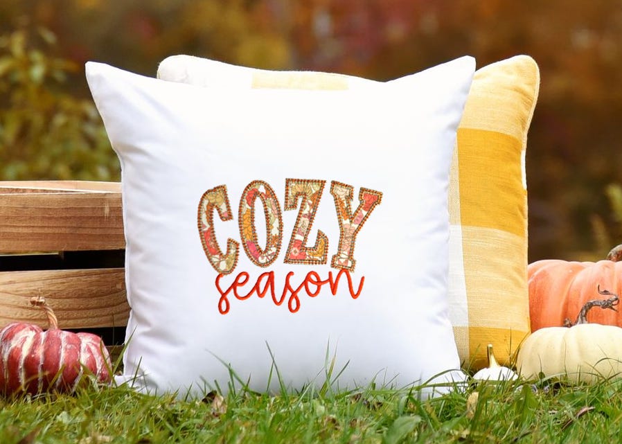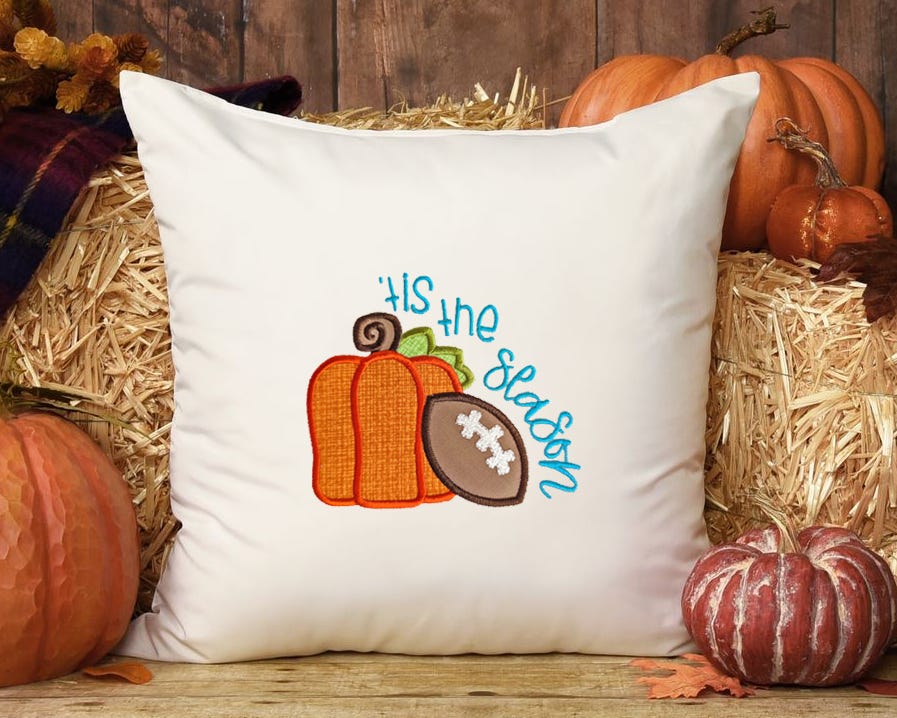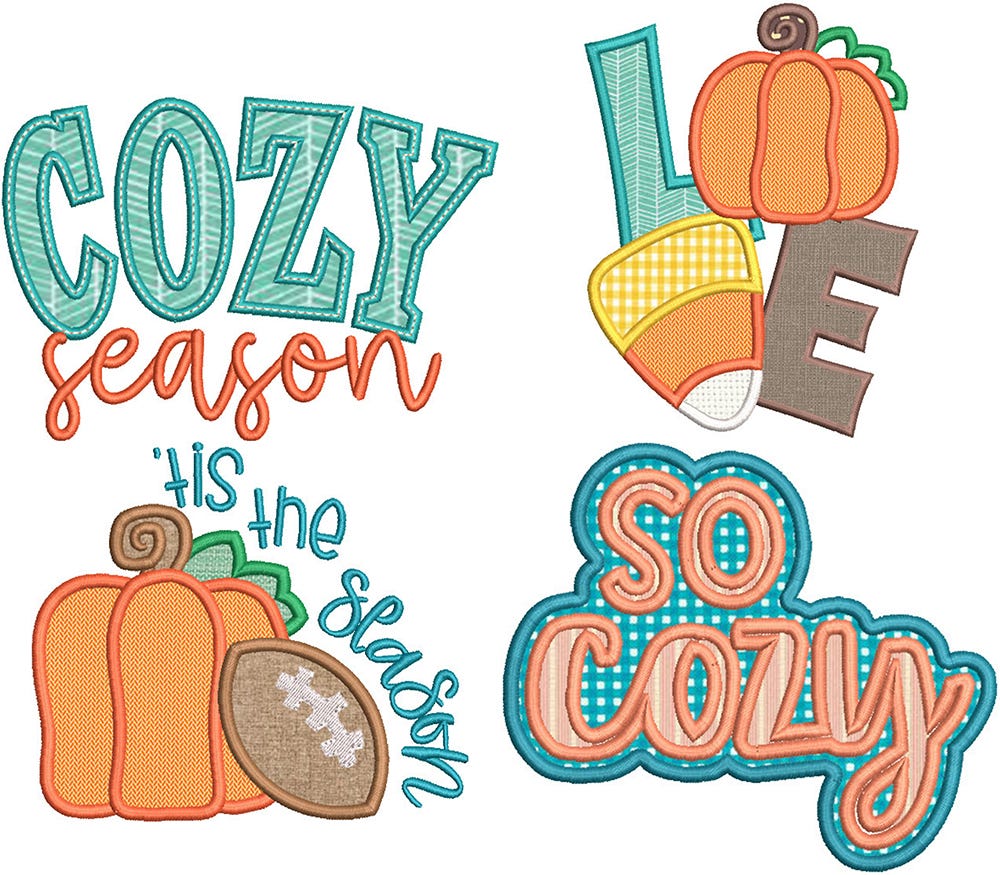 Time to get cozy with pumpkins, candy and football! This set has four fun fall themed applique designs!