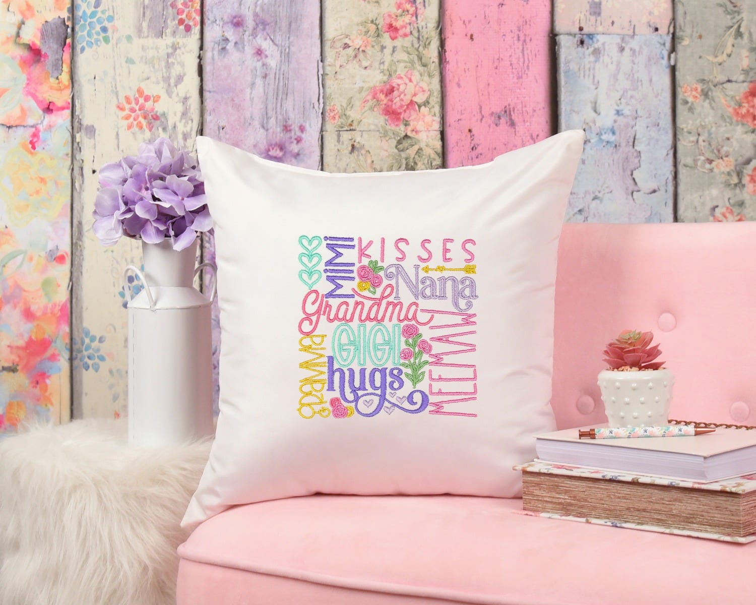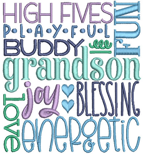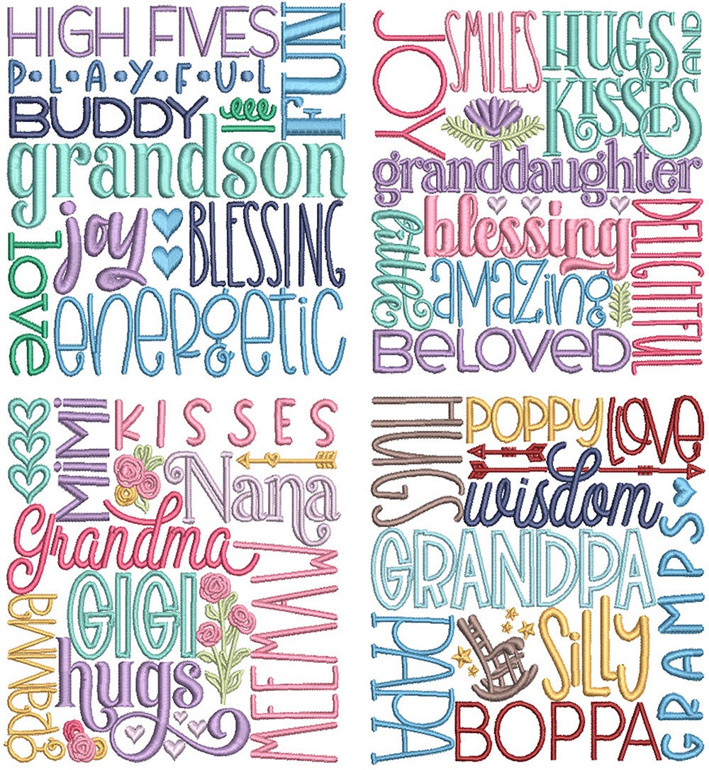 4 more sweet family themed subway art designs for grandparents and grandchildren! These embroidery-only designs have satin stitch lettering with satin stitch design accents.