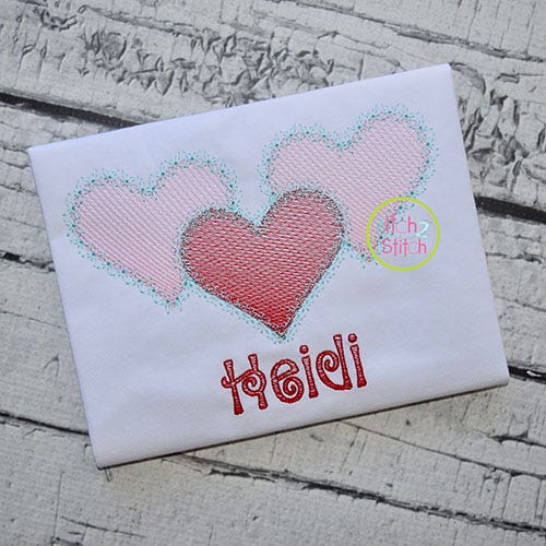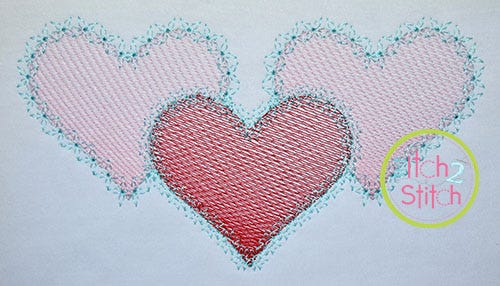 Please note this design is not applique, nor a traditional satin stitch or fill stitch. The light and airy "sketch" fill pattern allows for a quick stitch out. The space between each line of stitching varies to create the shading effect. The shapes are finished off with a decorative stitch outline.Ā