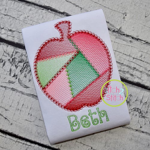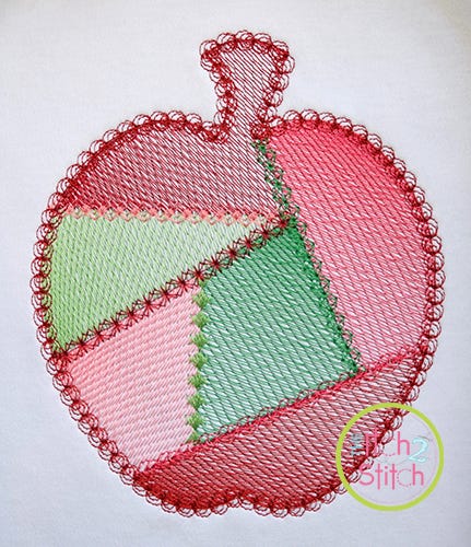 Please note this design is not applique, nor a traditional satin stitch or fill stitch. The light and airy "sketch" fill pattern allows for a quick stitch out. The space between each line of stitching varies to create the shading effect. The shapes are finished off with a variety of decorative stitch outlines.Ā