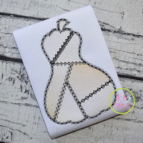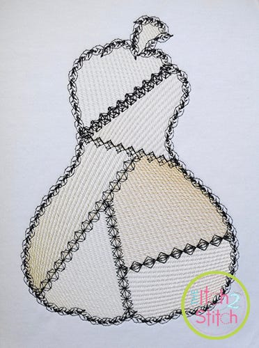 Please note this design is not applique, nor a traditional satin stitch or fill stitch. The light and airy "sketch" fill pattern allows for a quick stitch out. The space between each line of stitching varies to create the shading effect. The shapes are finished off with a variety of decorative stitch outlines.