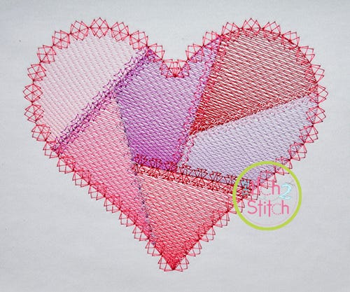 Please note this design is not applique, nor a traditional satin stitch or fill stitch. The light and airy "sketch" fill pattern allows for a quick stitch out. The space between each line of stitching varies to create the shading effect. The shapes are finished off with a variety of decorative stitch outlines.