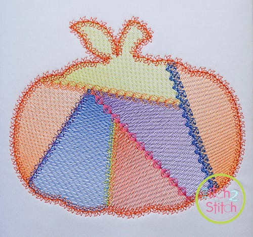 Please note this design is not applique, nor a traditional satin stitch or fill stitch. The light and airy "sketch" fill pattern allows for a quick stitch out. The space between each line of stitching varies to create the shading effect. The shapes are finished off with a variety of decorative stitch outlines.Ā