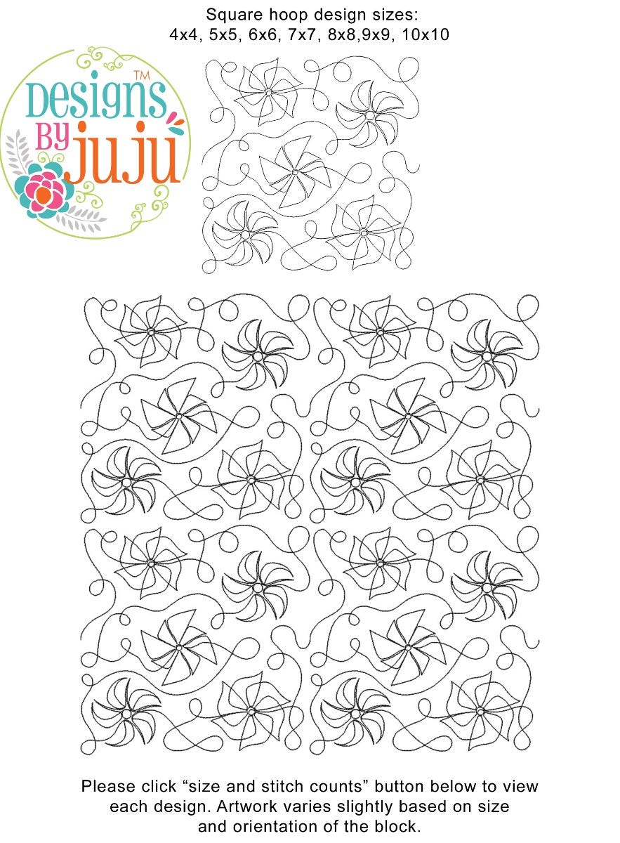 13 sizes included! 7 square sizes and 6 rectangle hoop sizes (includes files for both vertical and horizontal orientations). Reverse Point Order files are also included for use on large quilts.