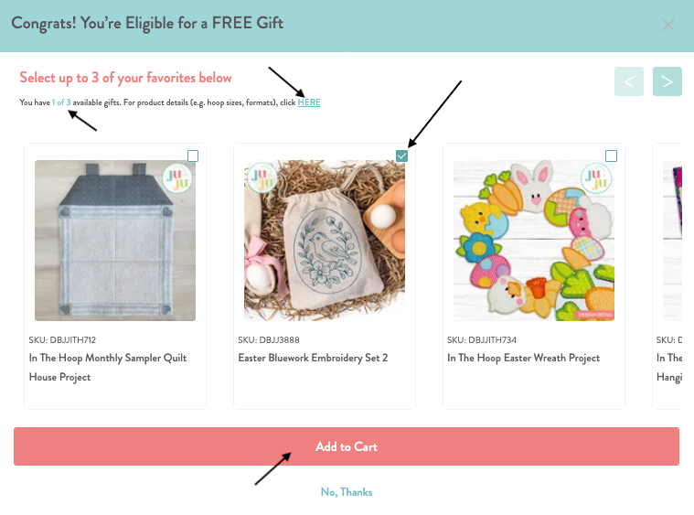Thank you for your order! If your single order design total was at least $30 USD, the Bonus Bundle of designs will automatically appear in your downloads AFTER the completion of your order. They will NOT appear in your cart nor on your email order confirmation. Once you log into your account on our website, the bonus items will be located at the bottom of your order after the products you purchased. (Please note: you may have more than one page of downloads for your order.) Full details explained here.