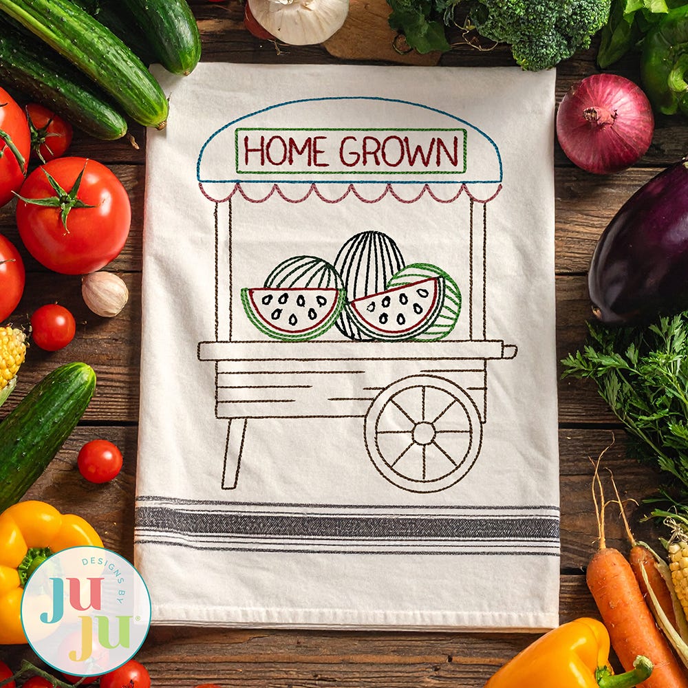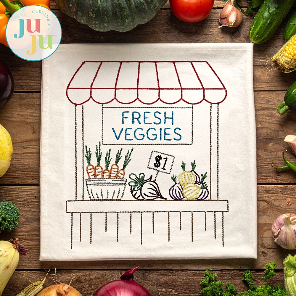 Savor these sweet farm fresh Farmer's Market embroidery designs!