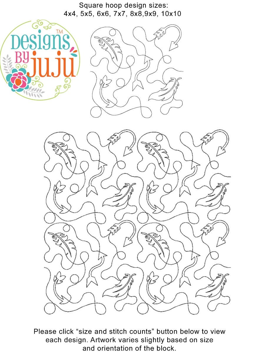 Includes continuous line single run End-to-End Quilting™ embroidery design as shown.