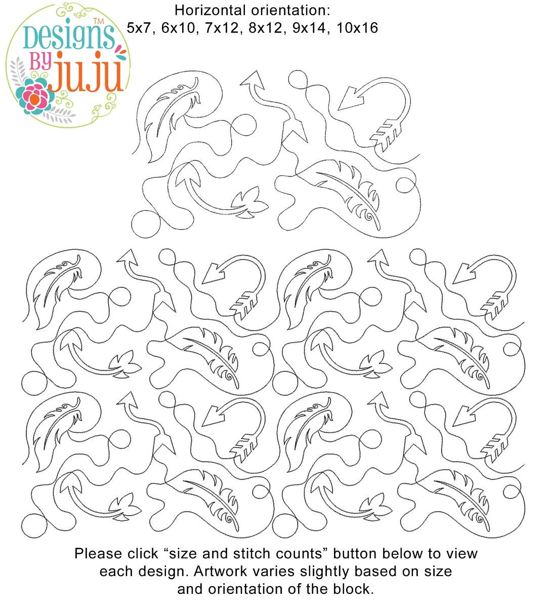 Please note: Both the scale of each pattern and arrangement of the motifs may vary based on the hoop size. Please click the "Size and Stitch Count" button to view the artwork for each size.