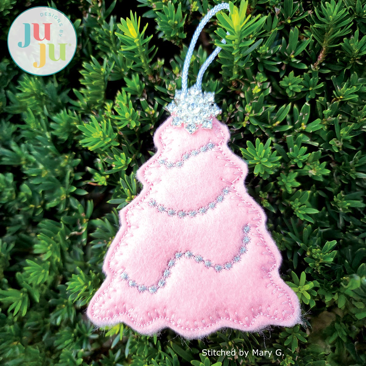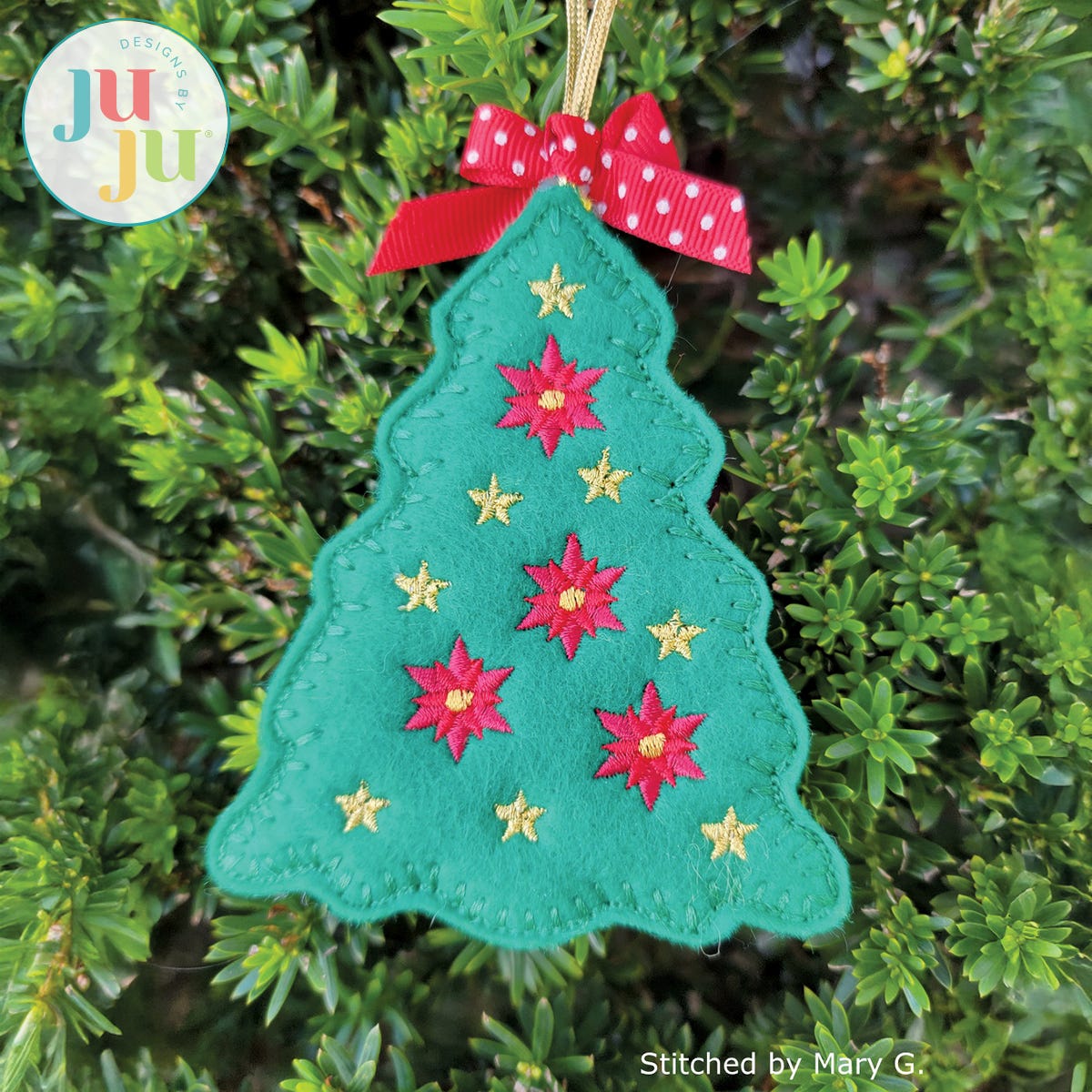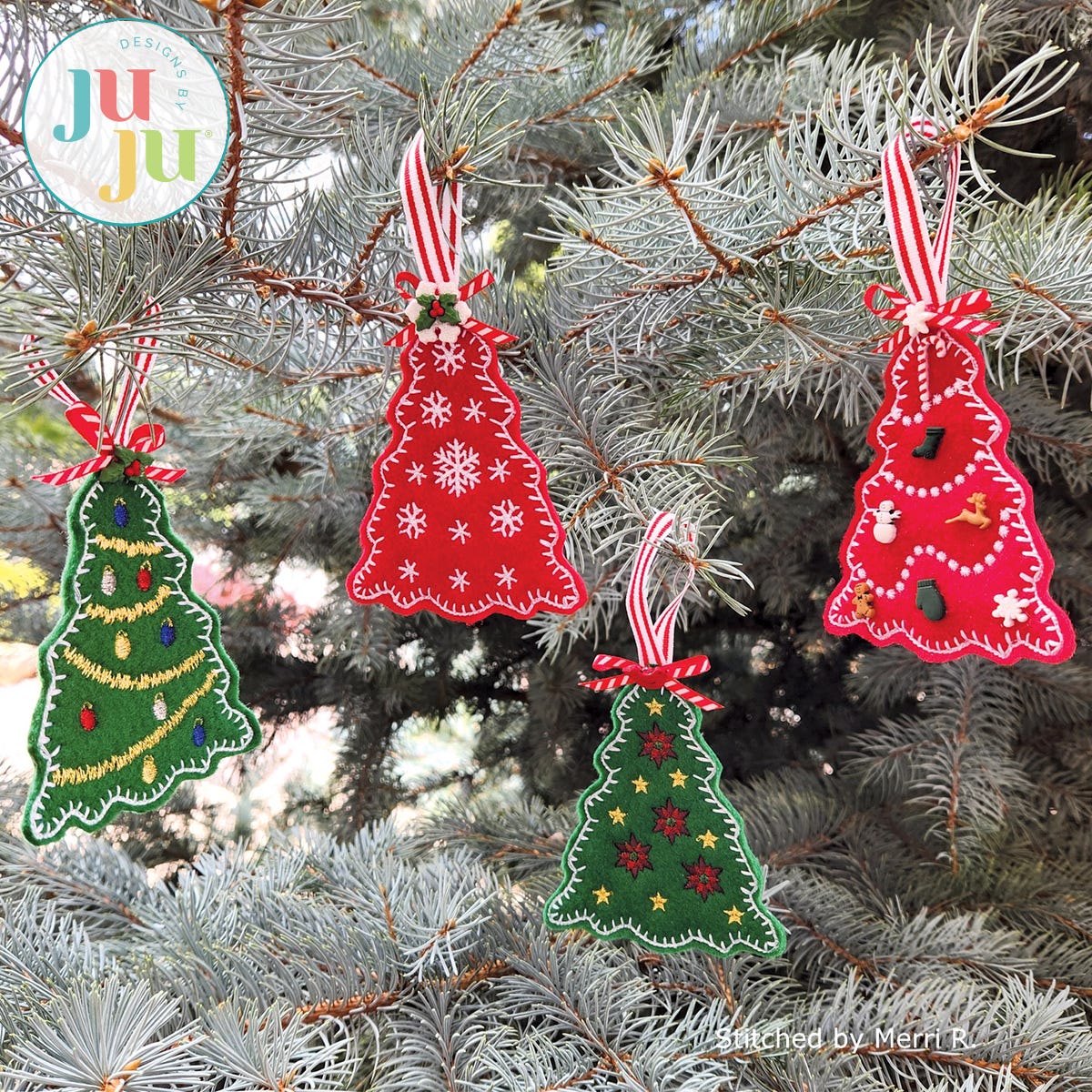 These tree ornaments are made from felt and stitch up quickly. They are a fun addition to Christmas gift packages or Christmas trees. Include them with your Christmas cards for a special Christmas greeting!