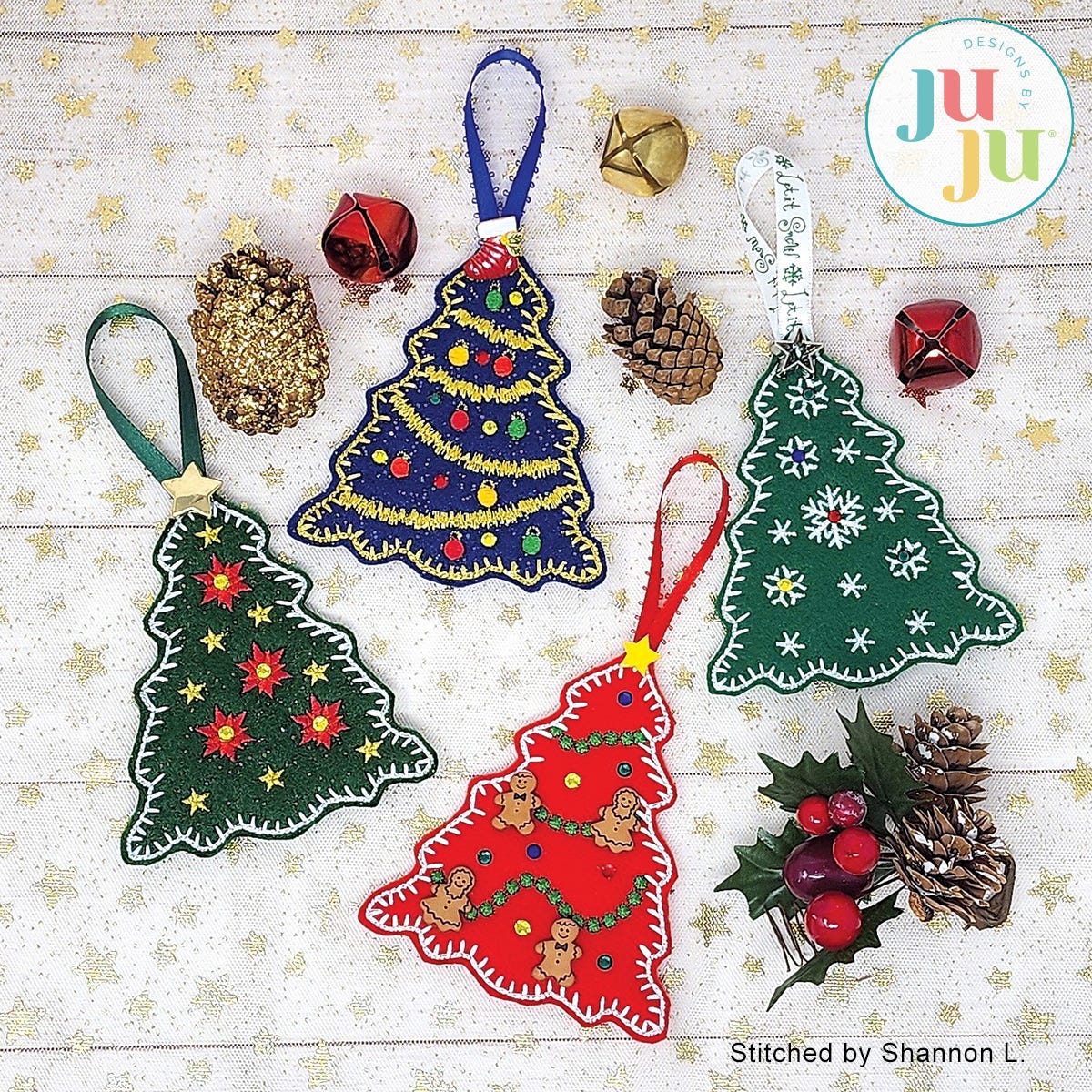 Designs by JuJu recommends the user friendly Embrilliance embroidery editing software to type out fonts in BX format, combine/merge designs, personalize and customize projects and more! Check out their programs Essentials, Enthusiast, StitchArtist , and Thumbnailer to learn more about their other useful, fun and easy features!