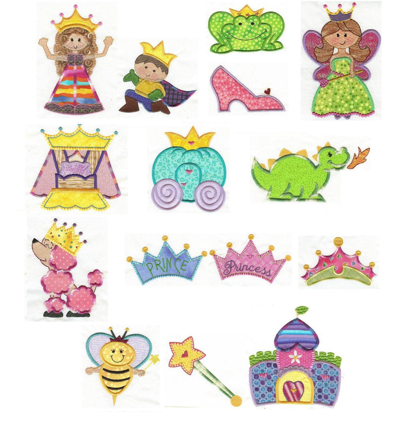 Here ye all fairytale lovers! Here is a huge, absolutely precious set of princess themed applique designs that your little princess will just fall in love with!